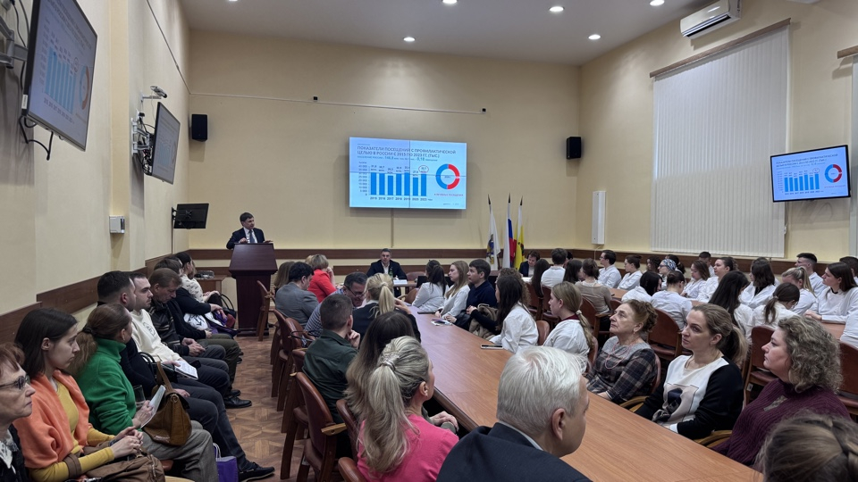 С приветственным словом выступил ректор РязГМУ, заслуженный деятель науки Российской Федерации, профессор Роман Евгеньевич Калинин: