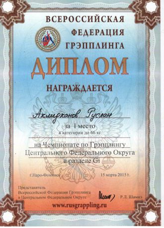 И еще одну победу в копилку спортивных достижений РязГМУ принес Руслан Ахмедханов. Интерн кафедры госпитальной хирургии выступил на Чемпионате по грэпплингу Центрального Федерального округа. В весовой категории до 66 килограммов Руслан занял первое место.