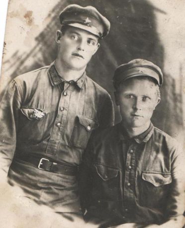 «Мой дедушка Петров Михаил Васильевич служил в рядах Красной Армии с 1929 года. Когда началась война, он оказался в числе бойцов, воевавших на Западном фронте. Михаил Васильевич участвовал в оборонительно-наступательной операции под Смоленском. Известно, что в 1942 году Михаил Васильевич был командиром минометной роты. В этот же год он погиб. О дедушке осталось мало сведений, но в семейном архиве хранится его фото в военной форме».