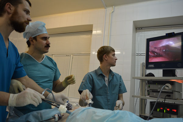 «Учиться нужно на самом качественном оборудовании для максимально быстрого достижения результата. При этом не имеет значения, что на операционном столе лабораторное животное, - отметил Д.А. Хубезов, - WetLab позволяет объективно оценить квалификацию хирурга, увидеть, насколько хорошо обучающийся освоил технику выполнения операции. А поскольку анатомия лабораторной свиньи почти полностью повторяет анатомию человека, то успешно выполненная операция в WetLab позволит повторить опыт в клинической практике. В ближайшем будущем слушатели факультета дополнительного профессионального образования будут сдавать экзамены по практическим навыкам, выполняя операции на лабораторных свиньях».