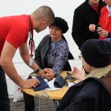 Команды в синих и белых футболках проводили акции на разных площадках по оказанию первой медицинской помощи. Участники мероприятия показывали всем желающим на манекенах алгоритм действий в чрезвычайных ситуациях.