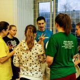 Команда зеленых разделилась – одна группа поехала в детский садик, где они провели зарядку с малышами, а другая – в больницу № 31. Студенты поддержали добровольцев, решивших стать донорами, а в детском отделении онкогематологии играли и дарили коробки радости с подарками маленьким пациентам.