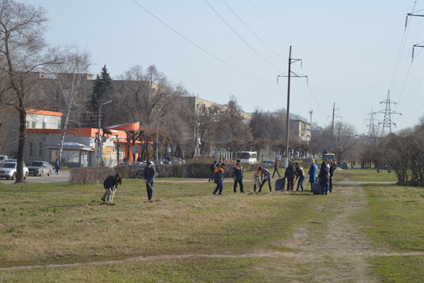 На уборку также вышли студенты и преподаватели университета, которые на протяжении нескольких дней будут благоустраивать зеленую зону перед вузом.