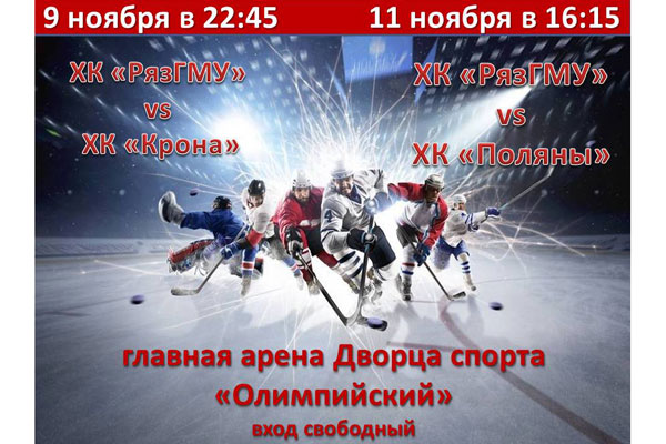 В пятницу, 9 ноября, во Дворце спорта «Олимпийский» состоится товарищеский хоккейный матч между ХК «РязГМУ» и ХК «Крона».