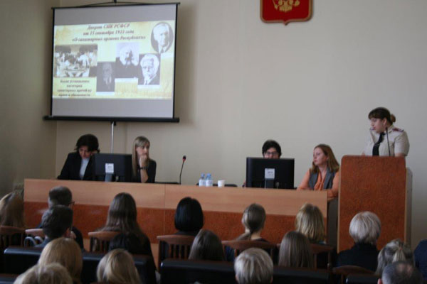Перед аудиторией выступили представители Рязанского государственного медицинского университета имени академика Павлова: и.о.декана медико-профилактического факультета, кандидат медицинских наук, доцент Татьяна Викторовна Моталова и начальник отдела довузовской подготовки и профориентационной работы Юлия Юрьевна Клейменова. Доклад был посвящен специальности «медико-профилактическое дело», получаемой выпускниками медико-профилактического факультета; сроке обучения, условиях поступления, минимальных баллах и учете индивидуальных достижений. Была представлена информация о том, для каких государственных органов, учреждений и организаций готовятся специалисты.