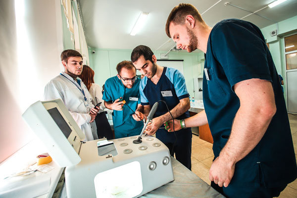 В ходе двухдневных соревнований участники выполняли лапароскопические «операции» сначала на тренажерах и фантомах в центре симуляционного обучения и аккредитации специалистов, после чего команды-победители первого соревновательного дня получили уникальную возможность выполнить оперативные вмешательства на лабораторных животных.