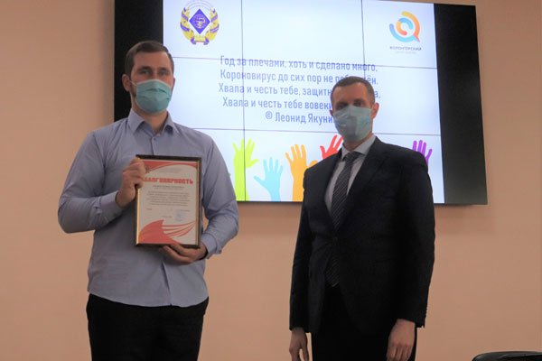 За добросовестный и бескорыстный труд бессменные волонтеры и оператор «горячей линии» награждены Благодарностями за подписью ректора университета. Заслуженные награды Роман Евгеньевич Калинин вручил 23 марта на заседании ученого совета университета специалисту воспитательного отдела управления по воспитательной работе Анне Михайловне Протасовой, студентам 5 курса лечебного факультета Денису Игоревичу Елисееву, Антону Николаевичу Савельеву и Леониду Алексеевичу Якунину.