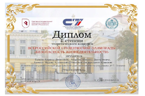 Подведены итоги Всероссийской студенческой онлайн-олимпиады по безопасности жизнедеятельности, проходившей в г. Саратове в конце апреля. Её участниками стали студенты медицинских и немедицинских вузов России.