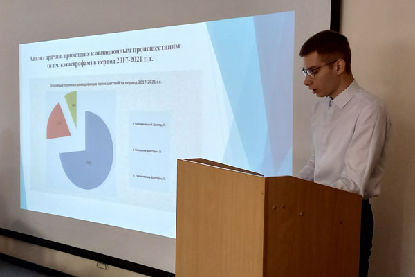 2 место в секции «Медицины катастроф» - студент лечебного факультета Мацнев Александр. Доклад "Вероятность авиационных происшествий на воздушных судах гражданской авиации" (научный руководитель - ассистент кафедры медицины катастроф и скорой медицинской помощи Посевкина О. А.)