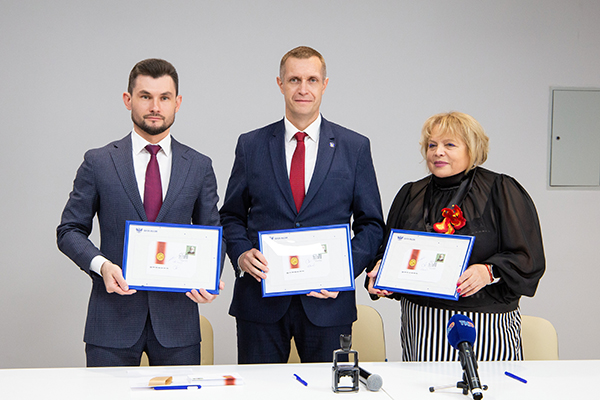 Первыми оттиск штемпеля на марку поставили ректор университета, д.м.н., профессор Роман Калинин, директор мемориального музея-усадьбы академика И.П. Павлова Наталья Загрина и заместитель директора УФПС Рязанской области Денис Полуэктов.