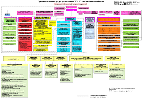 Организационная структура управления ФГБОУ ВО РязГМУ Минздрава России утверждена приказом ректора университета №517-д от 02.09.2025 г.
