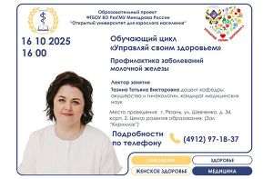 Данный обучающий цикл создан в рамках проекта "Открытый университет для взрослого населения», при организационной и информационной поддержке сообщества "Родные-любимые Рязанской области» Российского движения детей и молодежи «Движение первых». Организатор нового обучающего цикла для населения - кафедра детских болезней с курсом госпитальной педиатрии. Следующее занятие состоится в субботу, 18 октября, по адресу: г. Рязань, Ул Соборная, д. 8.