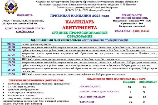 Рязанский государственный медицинский университет имени академика И.П. Павлова
