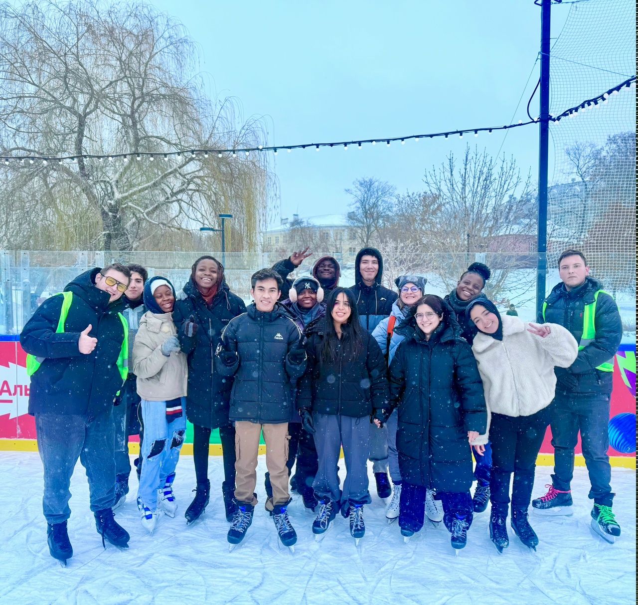 Et aujourd'hui, nos étudiants internationaux les plus énergiques et courageux ont fait une sortie «inaugurale» sur la patinoire principale de la capitale des fêtes – le Boulevard Lybedsky! Pour la plupart d'entre eux, ce n'était pas simplement une première fois sur la glace, mais carrément leur première rencontre avec la neige et le vrai l'hiver! Mais est-ce que cela pourrait arrêter de futurs médecins? Bien sûr que non!