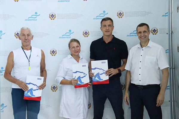 В рамках празднования 10-летия бассейна «Аквамед» прошло награждение посетителей, которые на протяжении всего времени работы бассейна активно занимаются в нем плаванием. Всего таких людей около ста человек разного возраста. Десяти из них, кто пришли на праздник к бассейну утром 1 августа, ректор университета Роман Калинин вручил сертификаты на безлимитное посещение бассейна в течении этого месяца. Остальные получат сертификаты в другие дни при посещении бассейна. Также среди пришедших гостей были разыграны 10 сертификатов на бесплатное посещение бассейна до конца 2024 года.
