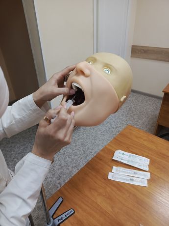 Олимпиада проходила в три этапа: 1-й этап – теоретический (тестирование), 2-й этап – практический (наложение швов на куриной коже), 3-й этап – практический (проведение анестезии на манекене).