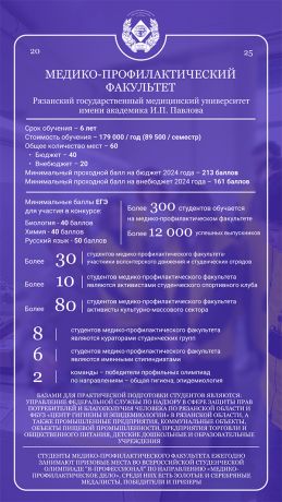 Хотите не просто лечить, а предотвращать болезни, защищать миллионы людей от вирусов, токсинов, радиации и фальсификата? Тогда вам — на медико-профилактический факультет Рязанского государственного медицинского университета!