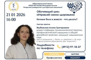 Данный обучающий цикл создан в рамках проекта "Открытый университет для взрослого населения», при организационной и информационной поддержке сообщества "Родные-любимые Рязанской области» Российского движения детей и молодежи «Движение первых». Организатор нового обучающего цикла для населения - кафедра детских болезней с курсом госпитальной педиатрии. Следующее занятие состоится в субботу, 18 октября, по адресу: г. Рязань, Ул Соборная, д. 8.