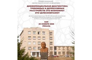 Приглашаем вас на межрегиональную научно-практическую конференцию «Дифференциальная диагностика тревожных и депрессивных расстройств: Это возможно? Это целесообразно?», которая состоится 20 ноября 2025 года в Рязани.