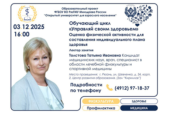 Приглашаем всех желающих на очередное занятие обучающего оздоровительного цикла для населения «Управляй своим здоровьем»!