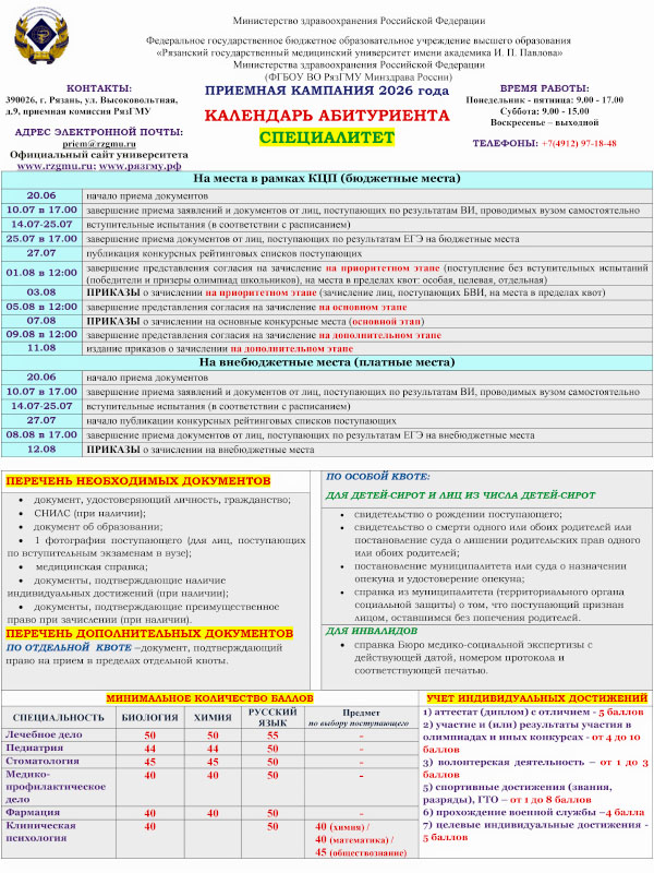 Рязанский государственный медицинский университет имени академика И.П. Павлова