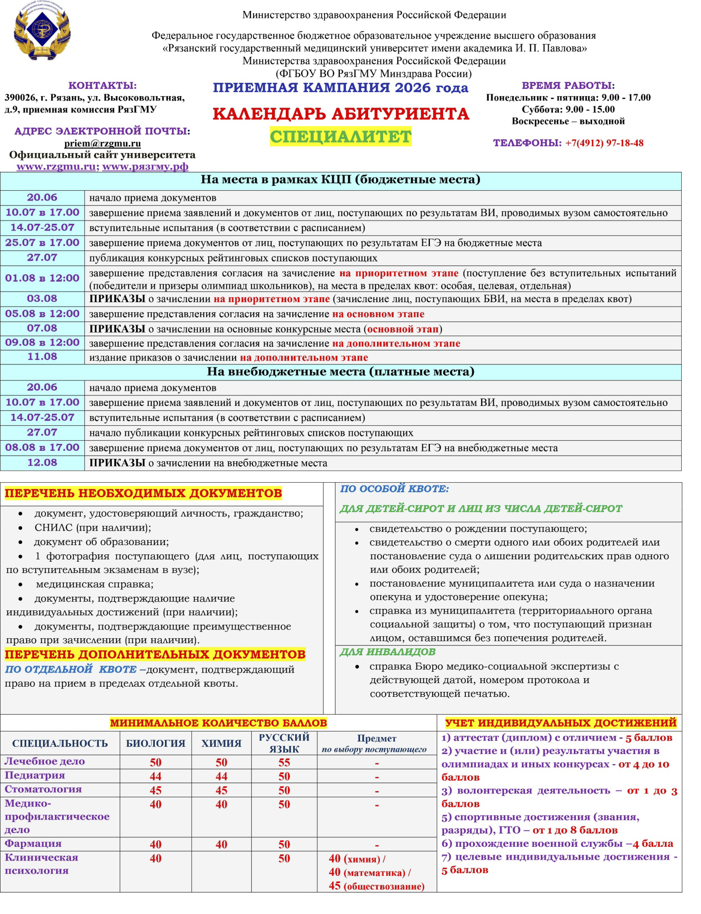 Отправляя данные в этой форме, вы соглашаетесь на обработку и хранение следующих персональных данных: полное имя, адрес электронной почты и номер телефона. Цели обработки персональных данных: оказание консультационных услуг. Хранение персональных данных осуществляется не дольше, чем этого требуют цели обработки персональных данных. Отзыв согласия на обработку персональных данных может быть произведен при личном обращении в ФГБОУ ВО РязГМУ Минздрава России.
