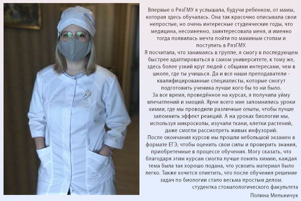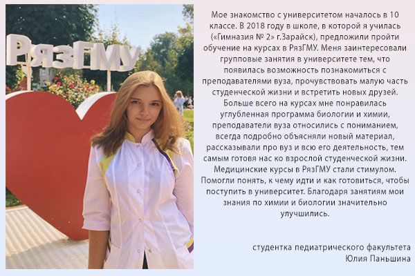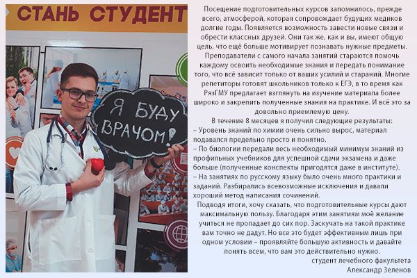 Более полную информацию об интенсив курсах можно получить в отделе довузовской подготовки и профориентационной работы университета по телефону: (4912) 97-18-48, y.kleimenova@rzgmu.ru