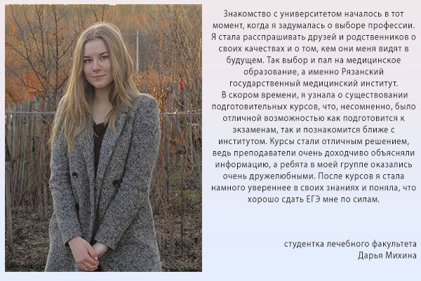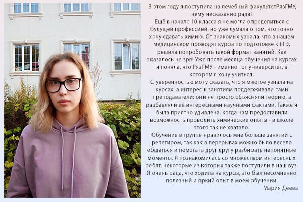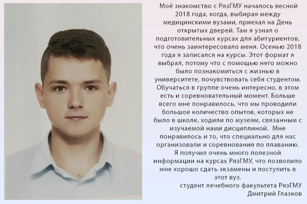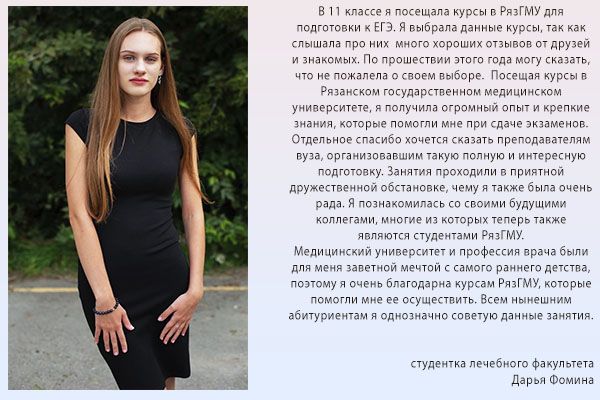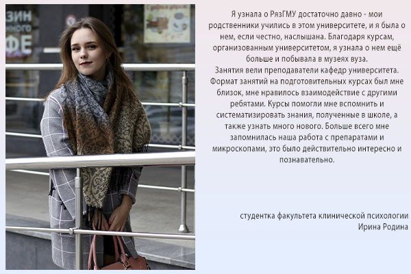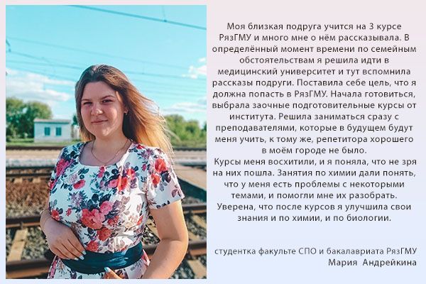 Далее с вами свяжется специалист и проговорит дальнейшие шаги. Полную информацию о подготовительных курсах можно получить в отделе довузовской подготовки и профориентационной работы университета по телефону: (4912) 97-18-48, y.kleimenova@rzgmu.ru