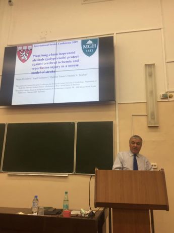 The lecture was dedicated to experimental studies of the role of nitrogen oxide in cerebral blood flow regulation in healthy transgenic animals and ones with cerebral crisis and was followed by a talk about Harvard medical School and peculiarities of medical education in the USA.