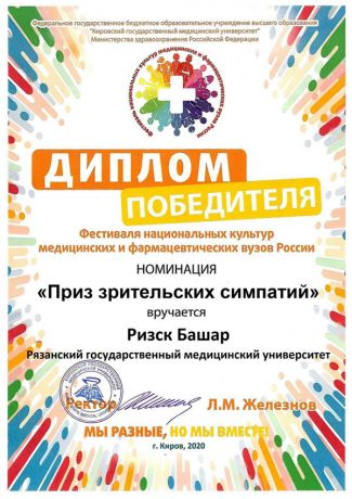 Supporting the Ministry’s initiative RSMU students took part in V Festival of National Cultures of Russian medical and pharmaceutical universities (Kirov). The festival was held online due to the epidemiological situation, nevertheless the event was colorful and bright.