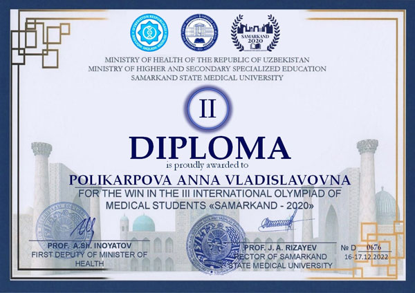 In December 2022 the III International Olympiad of Medical Students "Samarkand-2020" took place at Samarkand State Medical Institute (Samarkand, Uzbekistan). More than 60 RSMU students participated in the Olympiad online. 3000 would-be-practitioners and would-be-dentists from 76 higher medical educational institutions of Russia, Turkey, Poland, Belarus, Ukraine, Kazakhstan, Kyrgyzstan and other countries competed in knowledge of fundamental and clinical disciplines.