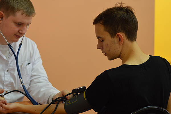 Акция, посвященная Всемирному дню борьбы с инсультом, включала в себя целую серию мероприятий. С утра в корпусах вуза сотрудники кафедры факультетской терапии с курсами эндокринологии, клинической фармакологи, профессиональных болезней измеряли давление. Студенты, преподаватели, сотрудники – каждый мог узнать давление и получить консультацию специалиста. На экранах в корпусах демоснтрирвоался ролик, предсоатвленный фондом помощи родственникам больным с инсультом – о симптомах инсульта и первой помощи .