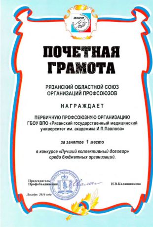 По итогам первое место занял профком Рязанского государственного медицинского университета имени академика Павлова.