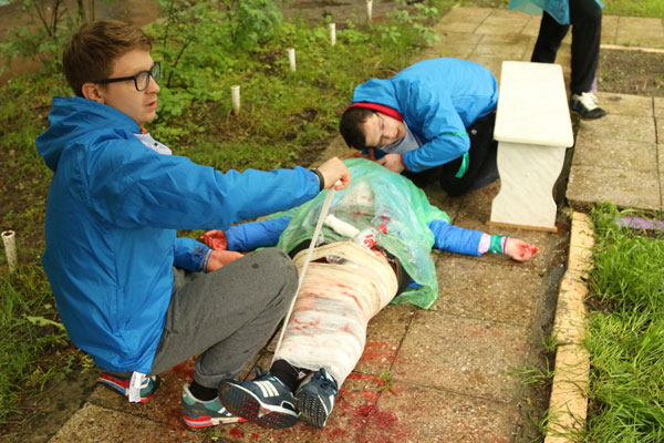 Заключительным и решающим этапом олимпиады стал квест. На каждой из станций маршрута команда должна была оказать неотложную помощь при различных несчастных случаях и травмах: электротравма, мототравма, ДТП, попытка суицида, отравление курительными смесями и друге.