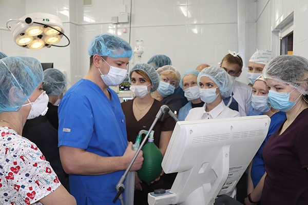 В Рязанском государственном медицинском университете имени академика И.П. Павлова продолжается курс для пульмонологов, анестезиологов-реаниматологов и инфекционистов по отработке навыков действий при нарушениях функций дыхательных путей у пациентов.