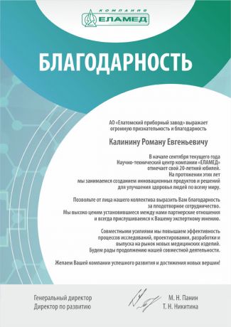 Рязанский государственный медицинский университет поздравляет коллектив Научно-технического центра компании «Еламед», который по праву славится своими медицинскими изделиями и задает тренды производства инновационного оборудования, с юбилеем! Высоко ценим наше сотрудничество и уверены, что научный потенциал центра будет востребован многие десятилетия!