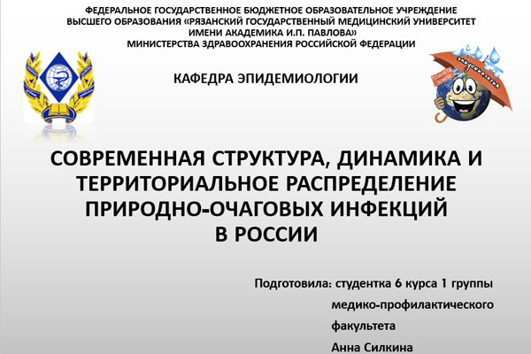 На заседании с докладами выступили студентки 6 курса медико-профилактического факультета РязГМУ. Анна Силкина представила доклад «Современная структура, динамика, территориальное распределение природно-очаговых инфекций в России», Александра Сидельникова презентовала результаты исследования на тему «Современная эпидемиолого-эпизоотическая характеристика природно-очаговых инфекций в Рязанской области». Студенты ВГМУ, в свою очередь, поделились данными по эпидемиологической характеристике заболеваемости малярией за 2007-2020 гг. на территории Воронежской области, а также осветили вопрос приверженности жителей Воронежа к рекомендациям Роспотребнадзора, касающихся распространения коронавирусной инфекции.