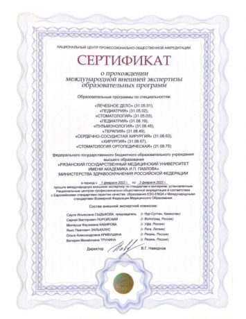 Завершена процедура международной аккредитации кластера образовательных программ РязГМУ. Проведена экспертиза и оценка программ на соответствие требованиям профессиональных стандартов и рынка труда, отвечающим международным и европейским стандартам качества.