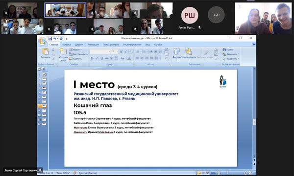По результатам интеллектуального состязания команда РязГМУ в составе Елены Мантровой, Ирины Джошкун, Михаила Гончара и Ивана Бабенко под руководством ассистента кафедры гистологии, патологической анатомии и медицинской генетики Виктора Витальевича Шеломенцева стала абсолютным лидером турнирной таблицы и завоевала диплом I степени.