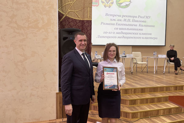 В Липецке на базе гимназии №12 «Гармония» вопросы ректору задавали ученики 10-11 классов медицинского кластера, в который входят четыре школы города. Уже на довузовском этапе они взаимодействуют с РязГМУ, знакомясь с особенностями профессии врача под руководством преподавателей университета.