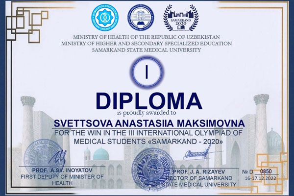 В студенческой олимпиаде «Самарканд-2020» под руководством более чем 120 наставников приняли участие свыше 3000 студентов в онлайн и традиционном формате из 76 высших медицинских учебных заведений России, Турции, Польши, Белоруссии, Украины, Казахстана, Киргизии и других стран. Студенты нашего университета показали профессионализм и высокий уровень знаний. Поздравляем всех участников и победителей!