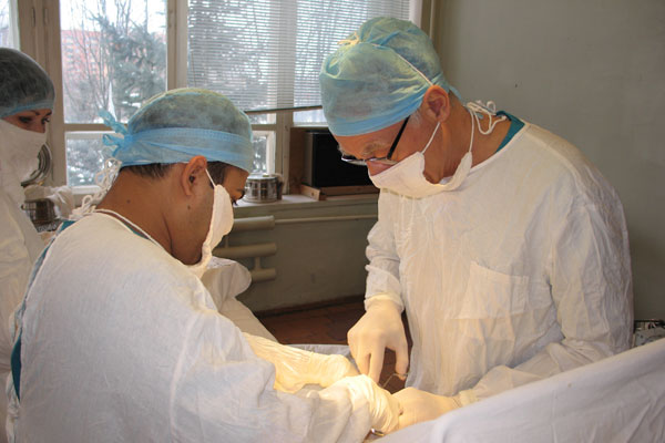 В обще хирургической практике запомнилась случай с пациенткой, которая лежала в реанимации по поводу токсического гепатита, которой в пупочную вену был введен катетер для введения препаратов улучшающих функцию печени. Больная пошла на поправку, и врач реаниматолог решил убрать катетер из пупочной вены, после чего возникло профузно внутрибрюшное кровотечение. Зайдя в реанимацию и увидев критическое состояние больной, я произвел верхнесрединную лапаротомию одним движением скальпеля зажал кровоточащий сосуд и шприцем Жане произвел одновременную реинфузию в подключичную вену 500 мл аутокрови. Этот позволило остановить прогрессирование геморрагического шока. Далее операция была закончена в классическом стиле. Самое интересно, то, что после выписки из стационара, через год, больная пришла ко мне совершенно здоровой, и сказала, что испытала, в тот период, чувство смерти. Много было различных эпизодов, которые во многом схожи у всех хирургов.