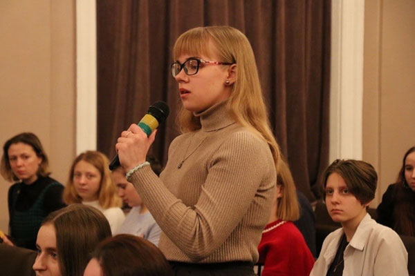 Далее наступило время диалога, и большая часть вопросов прозвучала от родителей учащихся. Интересовала финансовая сторона: "Реально ли студенту прожить на одну стипендию?" Ответ был таким: "Стипендия небольшая, но у студентов всегда есть возможность заработать дополнительные премии, если они хорошо проявят себя в учёбе".