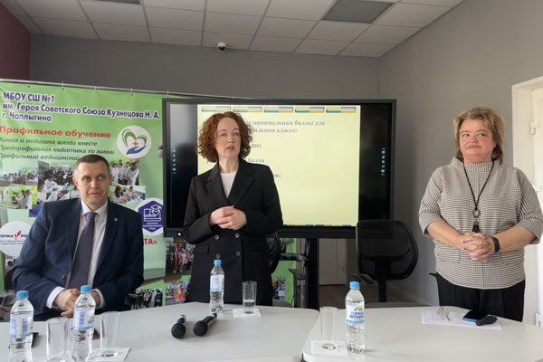 Начальник отдела управления делами и кадровой политики управления здравоохранения Липецкой области Марина Сергеевна Двуреченская познакомила школьников с алгоритмом получения целевого направления на обучение, подчеркнув, что формата довузовской подготовки подобного РязГМУ, на сегодняшний день не предлагает ни один другой медицинский вуз.