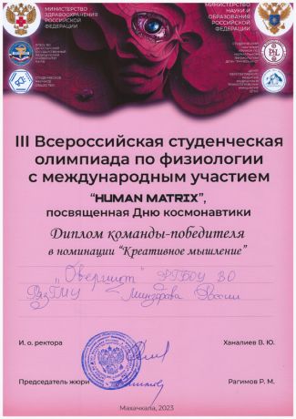 Третий, заключительный тур Олимпиады с международным участием «HUMАN MATRIX» по нормальной физиологии проходил в Махачкале. В Олимпиаде приняли участие 18 команд из разных вузов России, а также из Беларуси и Узбекистана.