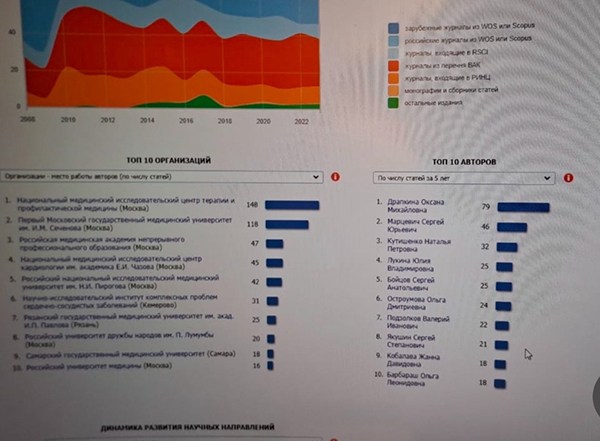 В честь 25-летия ведущего кардиологического журнала «Рациональная фармакотерапия в кардиологии» опубликован список НИИ и вузов страны, опубликовавших наибольшее количество научных работ по кардиологии за последние 5 лет.