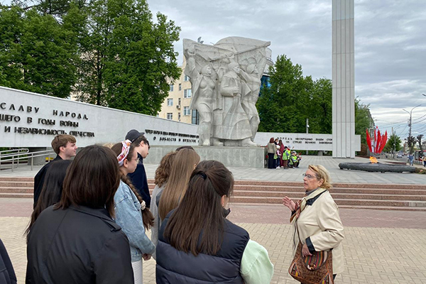 У монумента, посвященного Советско-польскому братству по оружию, студентам рассказали об истории формирования на Рязанской земле в 1943 году польской дивизии имени Тадеуша Костюшко, бойцы которой плечом к плечу с советскими солдатами мужественно сражались на фронтах войны.
