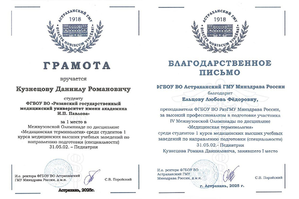 Студент 1 курса педиатрического факультета РязГМУ Даниил Кузнецов стал победителем олимпиады.