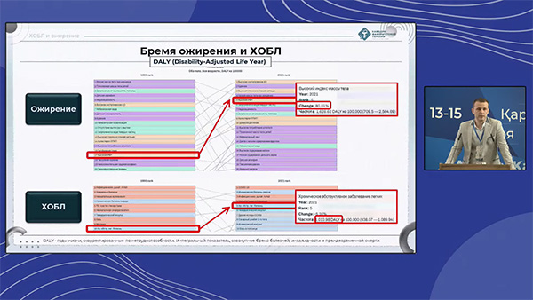 Юрий Панфилов выступил с докладом «ХОБЛ и ожирение: от патофизиологического парадокса к тактике ведения пациентов», представив актуальные данные и клинические рекомендации для ведения пациентов с сочетанной патологией.