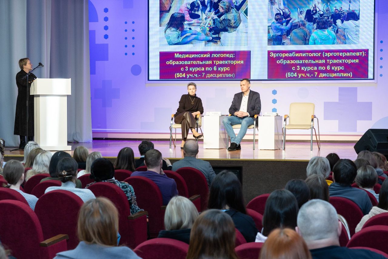 Открывая официальную часть, ректор университета Роман Калинин предложил школьникам воспринимать день не как презентацию, а как формат живого диалога, где можно задать вопросы преподавателям и студентам, почувствовать атмосферу профессии и осознанно выбрать траекторию обучения.